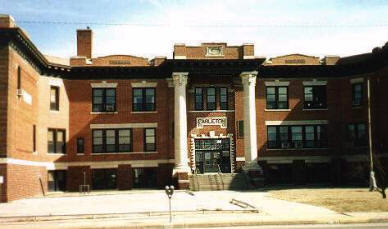 UPDATE: Carleton School was demolished in 2007. School ‘endangered’ in ‘97 is in worse shape now A grass roots effort is growing as citizens have finally become concerned over the proposed demolition of yet another historic Wichita structure. Letters to the editor and Opinion Line in the Wichita Eagle calls have demanded something be done to save Carleton School and find a use for it. This movement has led to our revisiting past issues of the HPA Heritage Guardian. The following article ran in the March 1995 newsletter: The City of Wichita and USD 265 have been trading real estate as of late. This has resulted in the ironic situation of the city in ownership of a school building... and having little idea of what to do with it. The rumors around City Hall are that it will be bulldozed. We hope not. Carleton School, at Lewis and Broadway, had its origin in 1877 as the First Ward School. It was replaced in 1880 by a brick structure. As time went by, several schools were built in a ward, and the schools acquired individual names. The First Ward School petitioned to have its name changed to Will Carleton School, in honor of the poet contemporary to the times. The first brick Carleton was replaced in 1913 by the current structure. It was one of several new schools, including Wichita High School, Horace Mann and Hamilton erected between 1910 and 1920. Carleton was closed as a neighborhood school in 1946 and was used as the school district’s main administrative office. Those administrative offices were moved in the late 1980s to north Water, and the building became part of a trade with the city. The city has no use for the building, and if a use cannot be found soon, or no developer takes an interest, Carleton School may join the list of Wichita’s endangered historic buildings. It is on no historic register. The city says it has no plans to demolish the building, but city manager Chris Cherches was quoted in The Wichita Eagle as saying he wants to remove all asbestos from Carleton in order to make it more attractive to potential buyers. This is not necessary, according to Darrel Thorpe, former superintendent of buildings and grounds for the school system. Thorpe says Carleton has no asbestos in the ceilings; only in the plumbing and steam pipes. The building has no central air conditioning or elevators, but it does have a chair lift on one stairway. Thorpe also said the old boilers were replaced around 1980, so the heating system is in good shape. The red brick structure contains three floors. It is constructed in a U shape and has an impressive entrance with a massive Doric column on either side. So, what does one do with an old school building? This is the classic problem facing historic preservationists. A sound, attractive old structure has no present use. Not all old buildings can be made into museums. Restoration and maintenance are expensive, and funds are scarce. The only answer to demolition is recycling. When this is done creatively and in good taste, the entire community benefits. Some alternative uses have been suggested including: • offices or apartments • fine arts studio • homeless or work release shelter • university extension class center • antique mall |