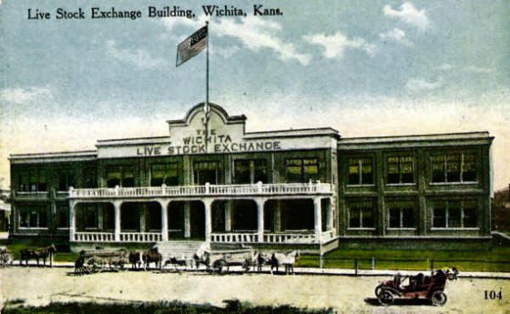 Generations of movie and TV viewers have known Wichita as a "Cowtown." And it was the cattle trade that was the driving economic force of our young city, as ranchers would drive their herds across a ford of the Arkansas River and down Douglas to the first cattle lots, just east of the new railroad line that would carry them to Kansas City, Chicago and beyond. J’Nell L. Pate says in her 2005 book, America’s Historic Stockyards: Livestock Hotels, "The entire town of Wichita could be termed a stockyards as early as 1872 when the two-year-old settlement and trading post on the Chisholm Trail saw its first railroad, the Santa Fe, arrive. Citizens also worked to get the Western & Southwestern Railroad to connect to the Santa Fe and others. After its first year as a railhead, Wichita received 70,000 head of cattle worth at least $2 million." The subsequent history is covered not only by J’Nell but also both the Wichita Beacon and Wichita Eagle as well as in Peerless Princess of the Plains. In January 1887 the Wichita Union Stock Yards Company was formed. They opened for business Oct. 18, 1887 on a 28 acre tract along Emporia Avenue around 18th Street. At the close of its first day of business the entire stockyards complex burned to the ground, destroying two carloads of cattle and 100 tons of hay. J’Nell says the very next day "local men pledged enough money in 45 minutes to begin rebuilding." That second stockyards opened Jan. 1. 1888. However they soon moved their location to just north of 21st street when meat packer Jacob Dold agreed to build a plant on 21st Street. This time they built not only lots but a Stockyards Hotel and an Exchange Building, in the middle of the stockyards. A second great stockyard fire occurred June 2, 1904, destroying both the yards and the hotel. J’Nell says, "After rebuilding, the company in 1906 gave meat-packer Cudahy one-sixth of the stock in exchange for a guarantee that Cudahy would continue to operate a packing plant in Wichita for at least 10 years. . . Cudahy kept increasing its percentage of ownership. By 1917 it owned one-third of the $1.4 million stockyards shares." In April 1909 the Union Stock Yards Company decided to build a new Exchange Building and move the old exchange building and hotel to the south side of 21st street, where they were joined together and opened as the Stockyards Hotel. That building, which also housed a restaurant famous for the best steaks in town, operated until it was destroyed by fire in the late 1960s. Those buildings were razed in March 1972 to make way for the North Industrial Park. The new Livestock Exchange Building, at 702 East 21st Street, was completed in a year. This 40-office, two story masonry building is the structure which most long-time residents of Wichita remember. Those who simply drove by might have been impressed with such a dominating – and white – structure in the midst of smelly packing and rendering plants. Those who actually entered the building were usually impressed and even amazed. The insides seemed filled with white marble, dark wood and glass. It housed 15 livestock commission firms, a national bank, stockyard company officer, the Wichita Terminal Railway Co. and branch offices of the packing houses. Two tile mosaics greeted visitors. One was a 40-inch by 45-inch bull’s head on the first floor. The other, on the second floor, was a 4-foot by 6-foot section of tiles that said "Market That Satisfies" and was surrounded by the heads of a cow, horse, pig and sheep. Sierra Petroleum Company purchased the Wichita Stockyards in 1972. By 1975 Sierra had purchased the last commission houses, and private treaty sales were virtually abolished. Livestock auctions continued for a while, but Sierra Petroleum shut down the stockyards on Aug. 1, 1980. Before the Exchange Building was razed, in February 2000, HPA purchased the two mosaics. HPA president Greg Kite told Beccy Tanner, in a Feb. 2, 2000 Eagle article, "We will put the tiles in storage along with the Allis Hotel stone we saved, then we will have a permanent display place for a lot of stuff. We have an enormous amount of material we can put on display." 10/08/2009 |