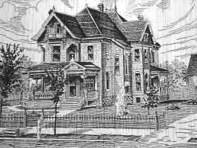 Pictured at left: The J. A. Wallace home, built about 1887, was located at 1021 N. Lawrence (now Broadway). Drawing taken from the Wichita City Directory, 1889. |