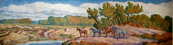 Birger Sandzen, "Kansas Stream," 1939, oil on canvas. In the mid-1930s, as part of the Federal W.P.A. program, Sandzen painted post office murals for Lindsborg, Halstead and Belleville, Kansas.