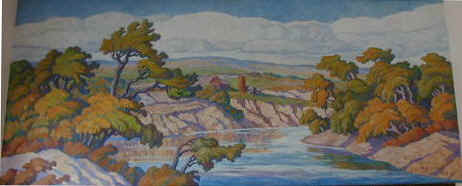 Birger Sandzen, "Smoky River," 1938, oil on canvas. Artwork placed on the National Register of Historic Places 10-17-89. In the mid-1930s, as part of the Federal W.P.A. program, Sandzen painted post office murals for Lindsborg, Halstead and Belleville, Kansas. Photo D&VC 8-01 |